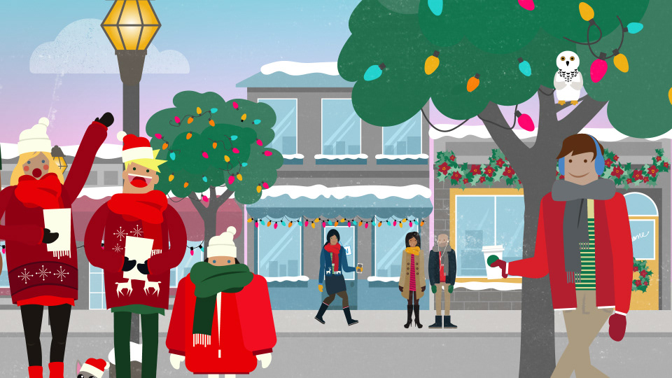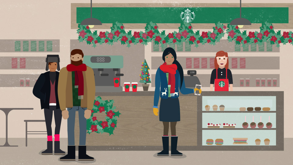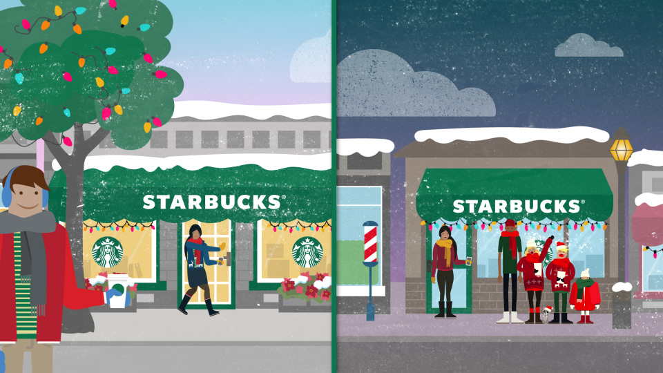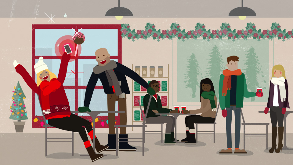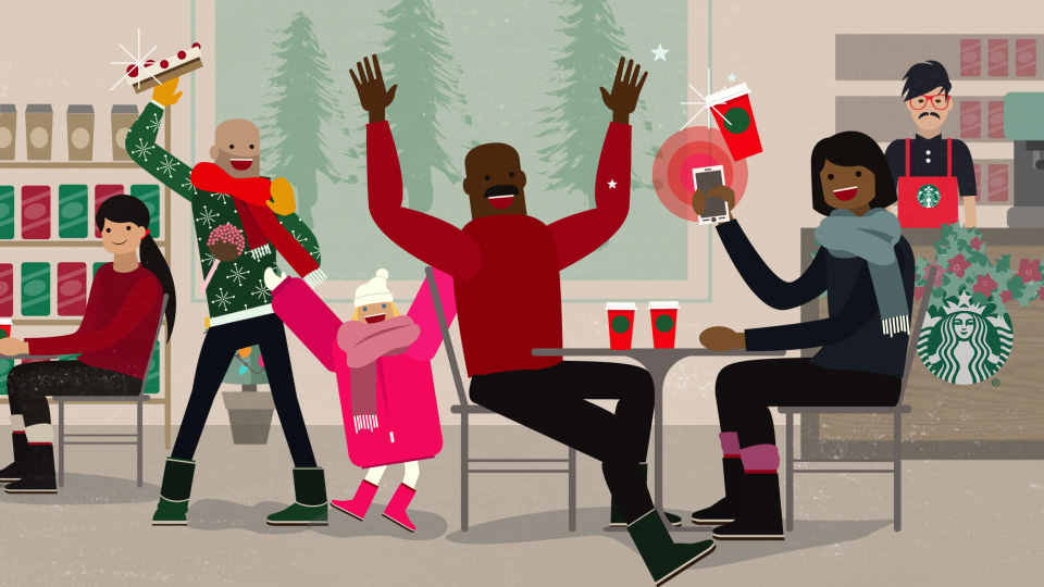 I designed these boards for a seasonal Starbucks piece at Very True Story. The characters were designed by Adam Avilla.